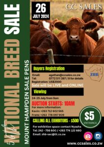 Read MoreThe 56th National Breed Sale, hosted by the Zimbabwe Herd Book (ZHB), is set to take place on July 26, 2024, at the CC Sales venue in Mount Hampden, Harare.…